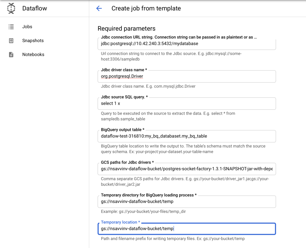 Moving data between Cloud SQL and BigQuery is fairly straightforward with federated queries. However, federated queries are not available for Cloud SQL instances created with a private IP address, which might be the only option in many organisation due to security constraints. As an alternative, a Dataflow pipeline can be built to do the job. Moreover, there is a template readily available (JDBC to BigQuery) which in an ideal world would have made this approach easy as well. However, there are some bits and pieces which can be not quite obvious. At least, they weren’t for me — I had to spend a few days building a working pipeline and in the end I had to ask a GCP expert for help. In this blog article I’m trying to address these issues to make life easier for other people facing the same challenge. In my example I’m using Postgres Cloud SQL although I would expect the Mysql case to be very similar if not identical.